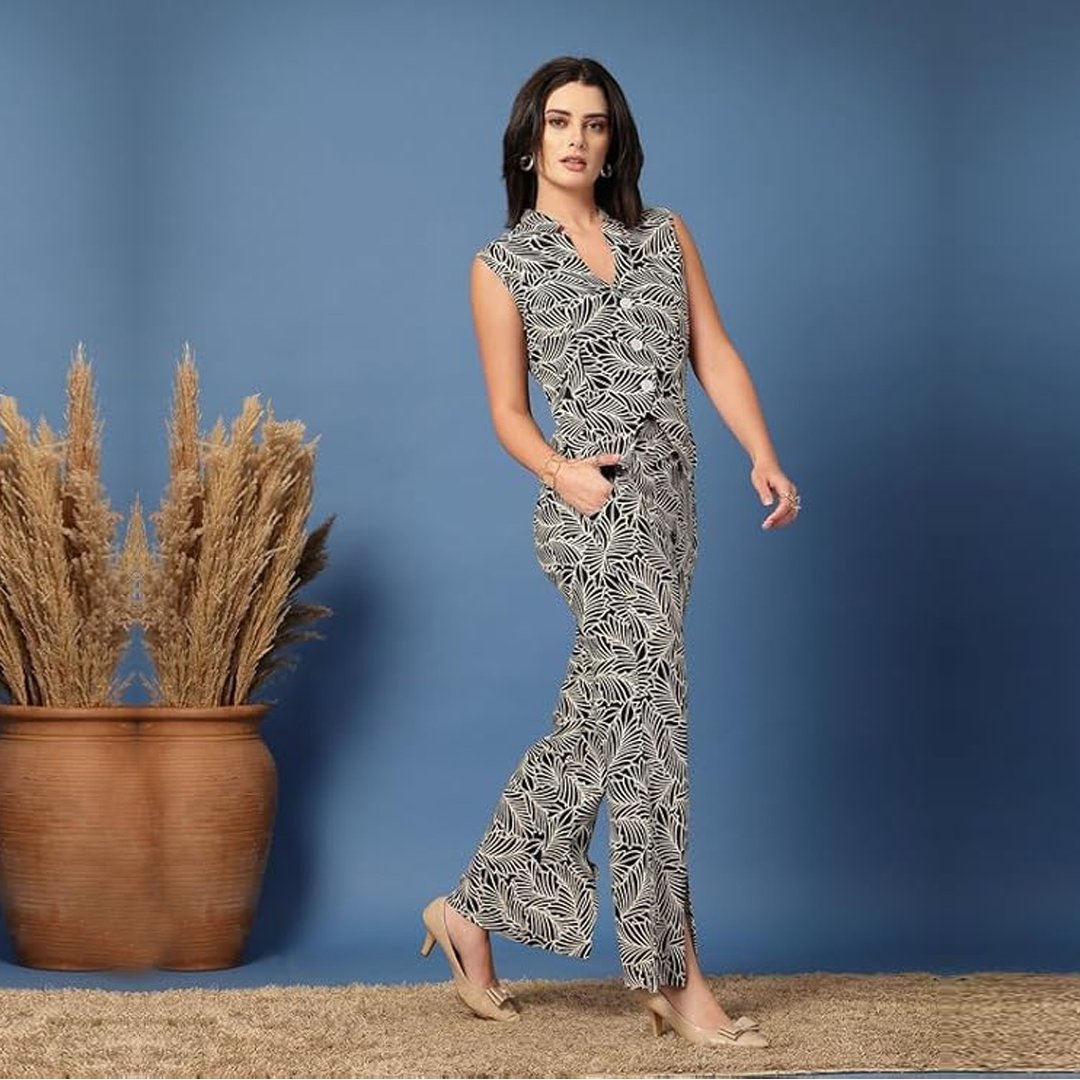 Daevish Tog New Rayon Printed Blazer Style Top With Pant Co ord Set For Women | Women Co ord Set